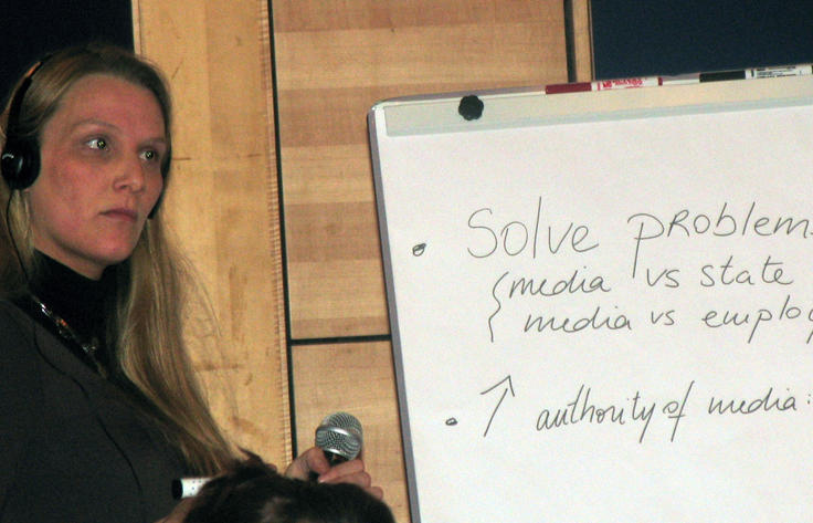 Adeline Hulin of the Office of OSCE Representative on Freedom of the Media, gives a seminar on aspects of self-regulation to journalists in Tirana, 23 March 2009. A series of such seminars is being co-organized with the OSCE Presence in Albania.