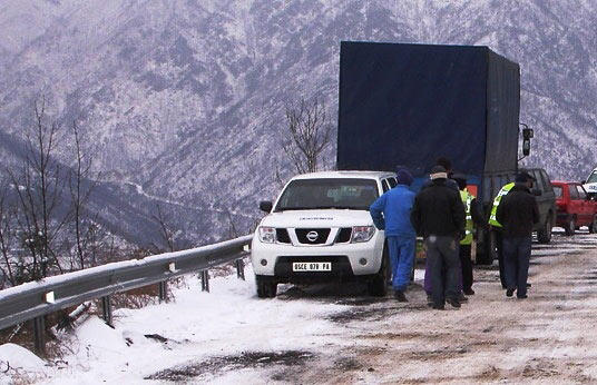An OSCE Presence in Albania vehicle on a road near Qaf Mali, Fushe-Arrez, Puka district (Shkodra region), 27 September 2008.
