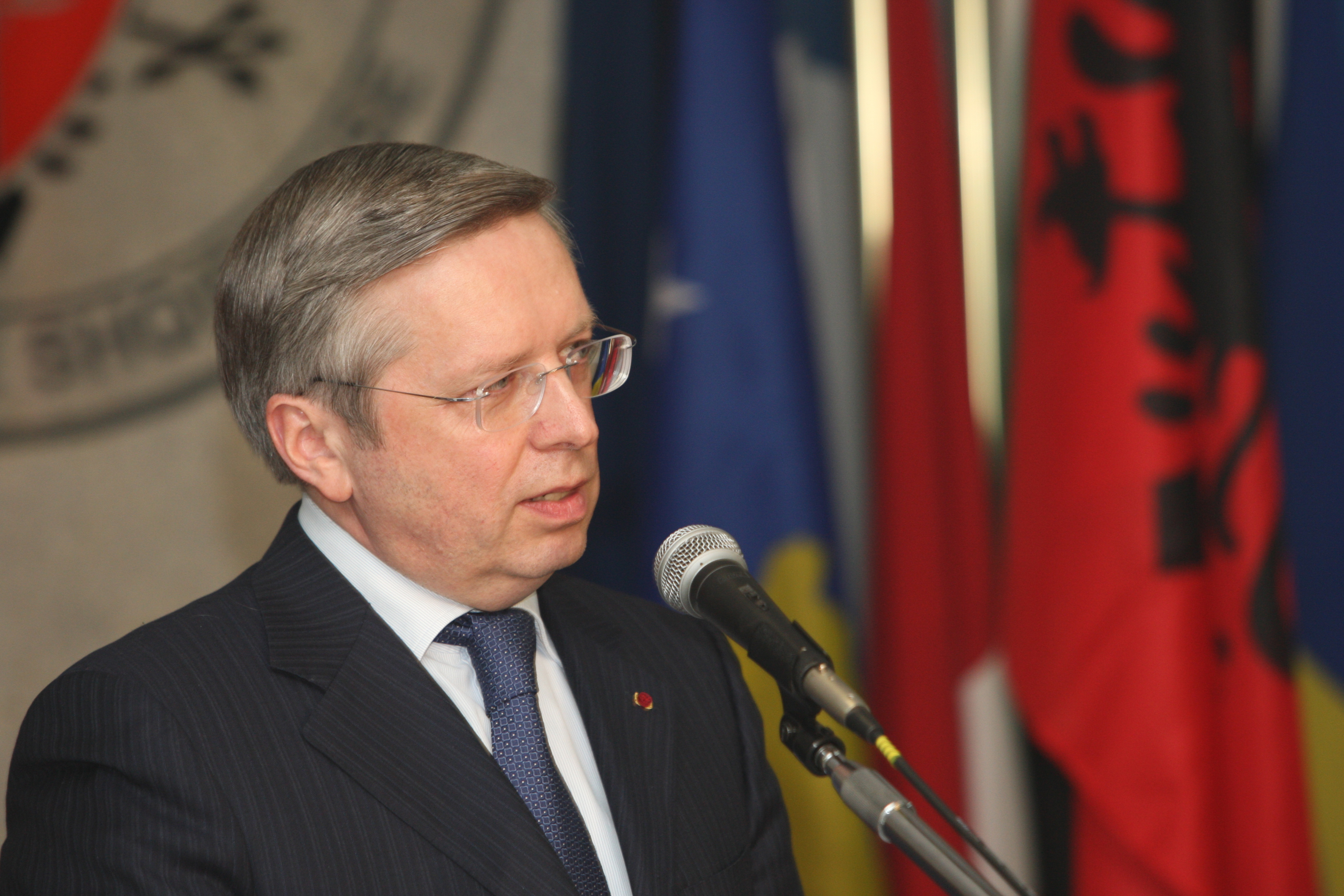 The Special Envoy of the OSCE Chairperson-in-Office, Kazakhstan's Deputy Foreign Minister Konstantin Zhigalov, during a visit to Albania, 15 March 2010.