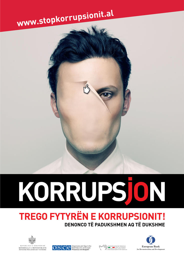 Show the Face of Corruption poster, part of the anti-corruption public information campaign launched by the OSCE Presence in Albania and the National Co-ordinator against Corruption, Tirana, 2 December 2015.