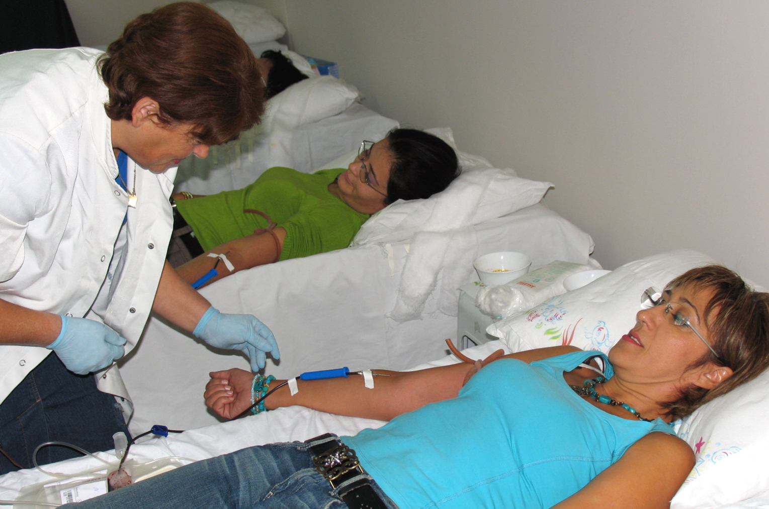 Staff members of the OSCE Presence in Albania donate blood in a campaign organized by the Albanian Red Cross, Tirana, 29 September 2006.