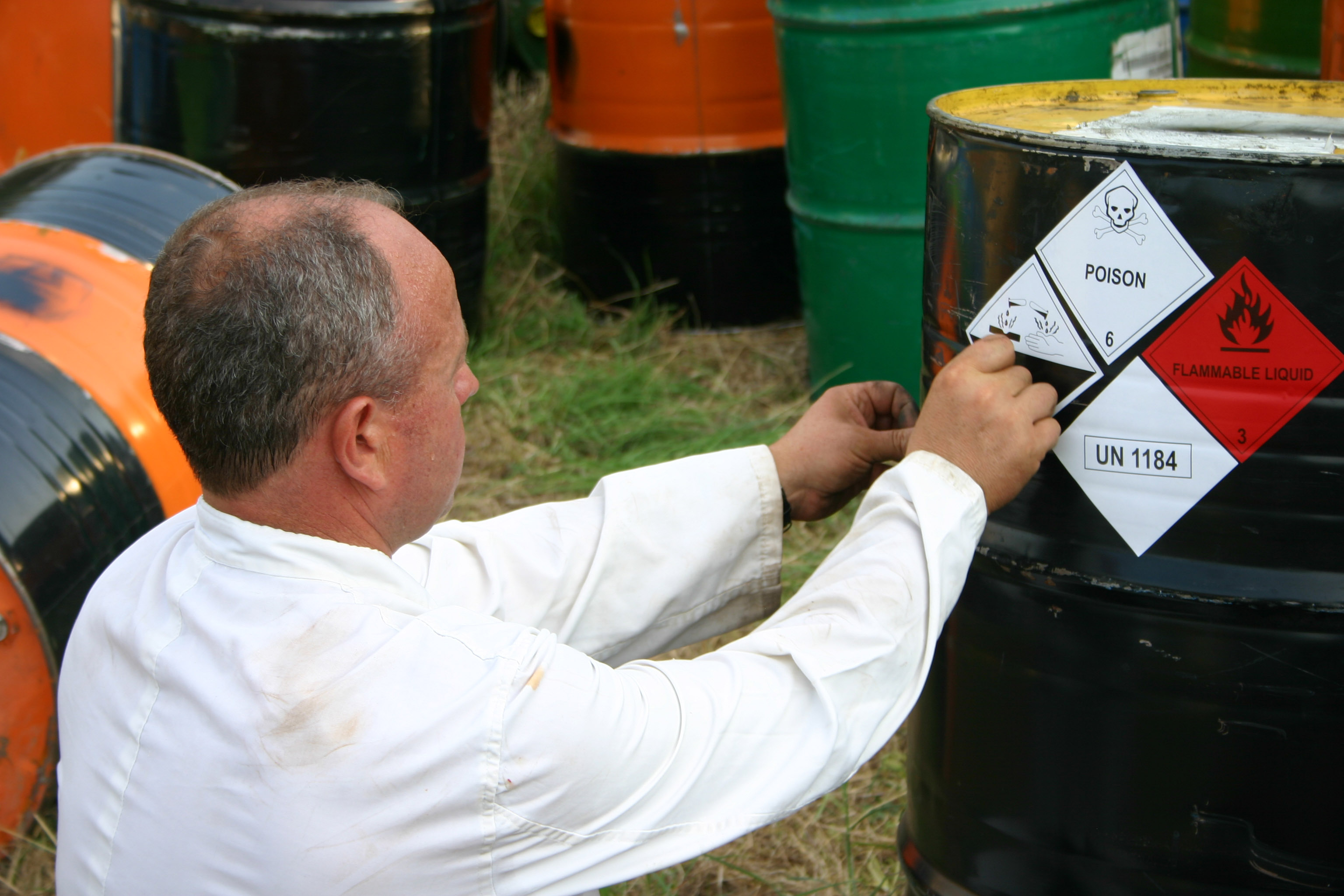 An Albanian army expert puts labels on one of 459 barrels containing 110 tonnes of the hazardous chemical dichloroethane prior to being shipped to Belgium and incinerated as part of an OSCE project. Photo taken in Brar, Albania, 28 July 2010.