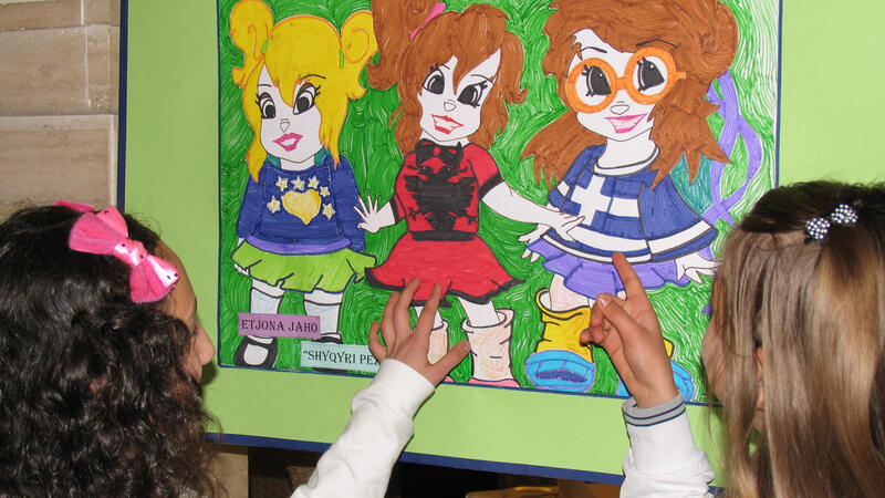 Head of OSCE Presence, Ambassador Eugen Wollfarth, hands certificates to children participating in an anti-discrimination event co-organized with the Commissioner for Protection from Discrimination, Tirana, 11 April 2011.