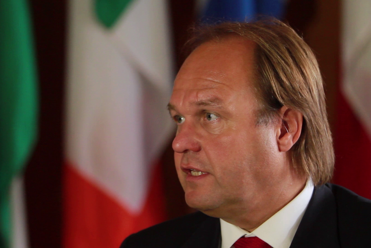 Still from a video interview with the Head of the OSCE Presence in Albania, Ambassador Eugen Wollfarth, Vienna, 18 January 2013.
