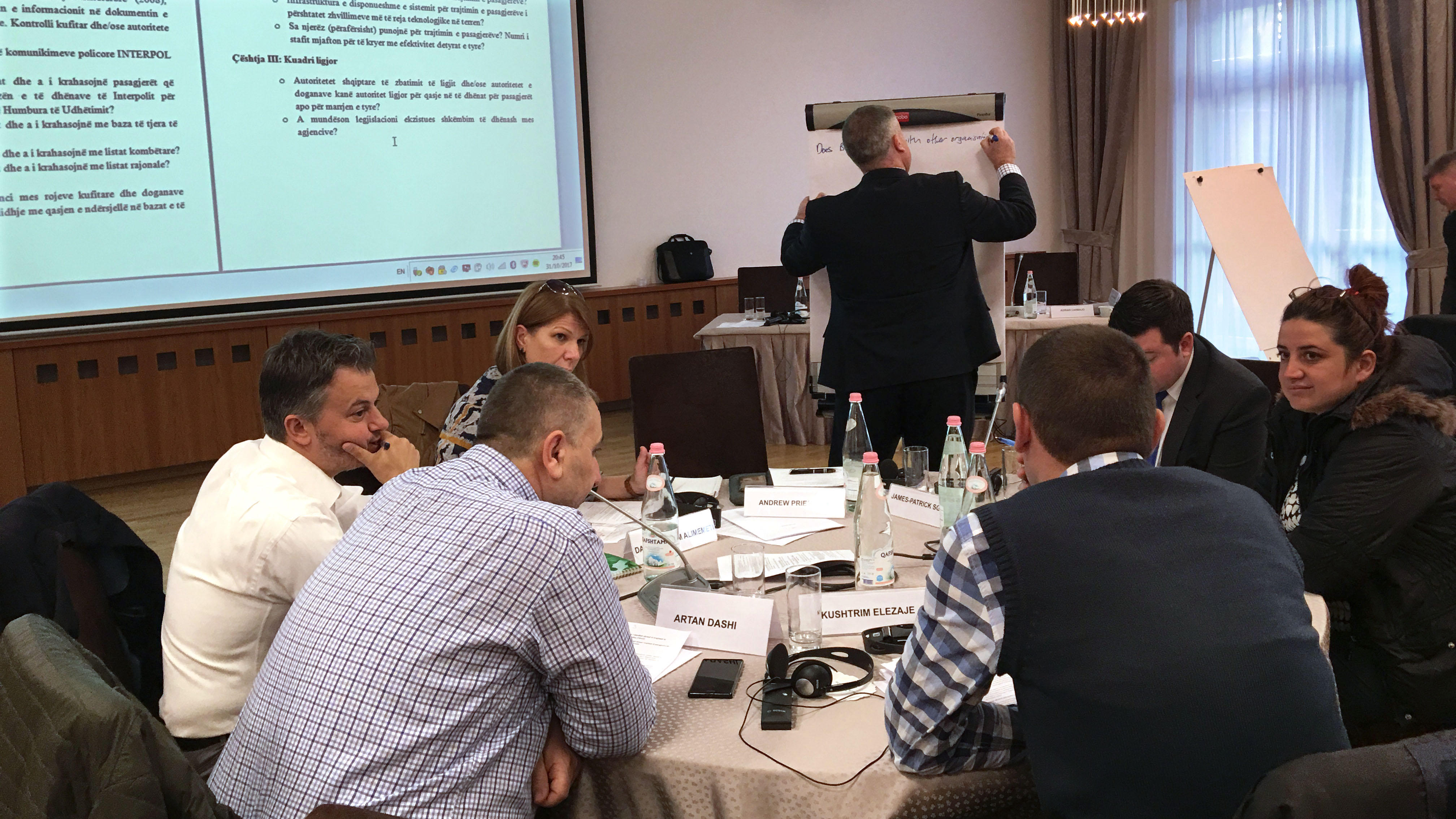 Participants, discussing in groups, during a workshop on establishing the Advance Passenger Information system, Tirana, 1 November 2017.