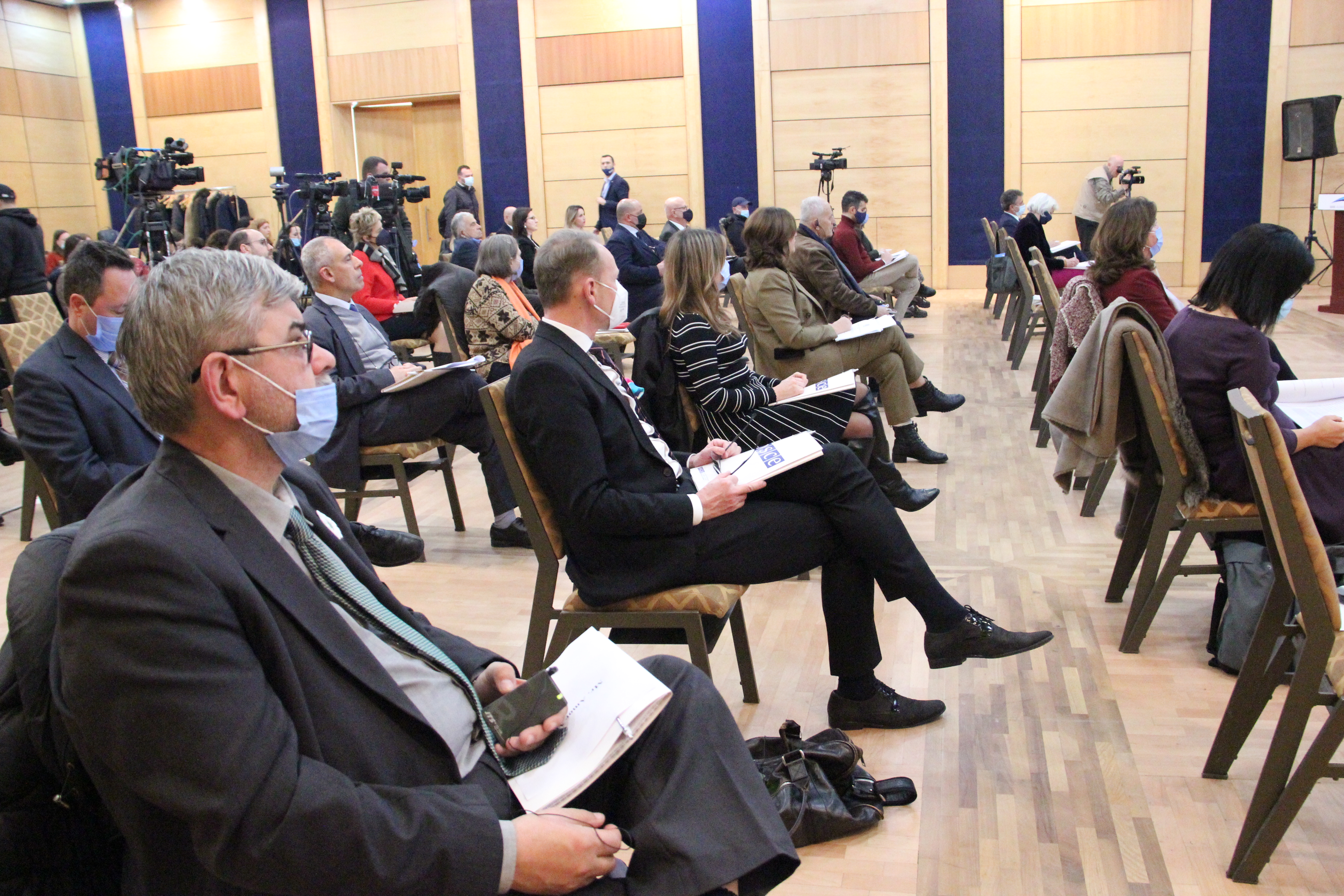 Participants at an international conference on disappearances in dictatorship organized by the OSCE Presence in Albania and Tirana University's Centre for Justice and Transformation, Tirana, 13 December 2021.