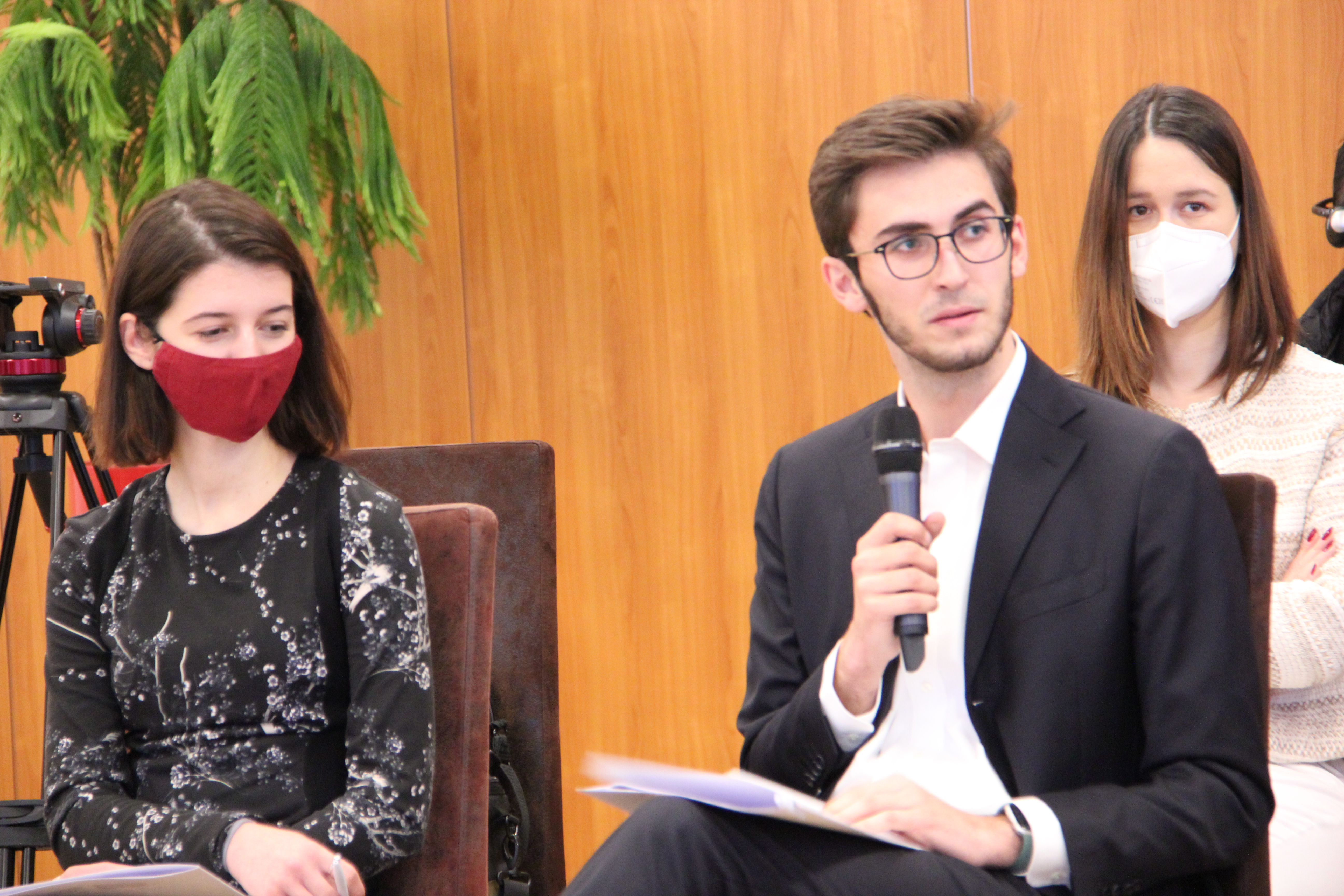 Young people speak at a #YouthTalk forum on Albanian youth perspectives on the region, peace security and the future, Tirana, 11 February 2022.