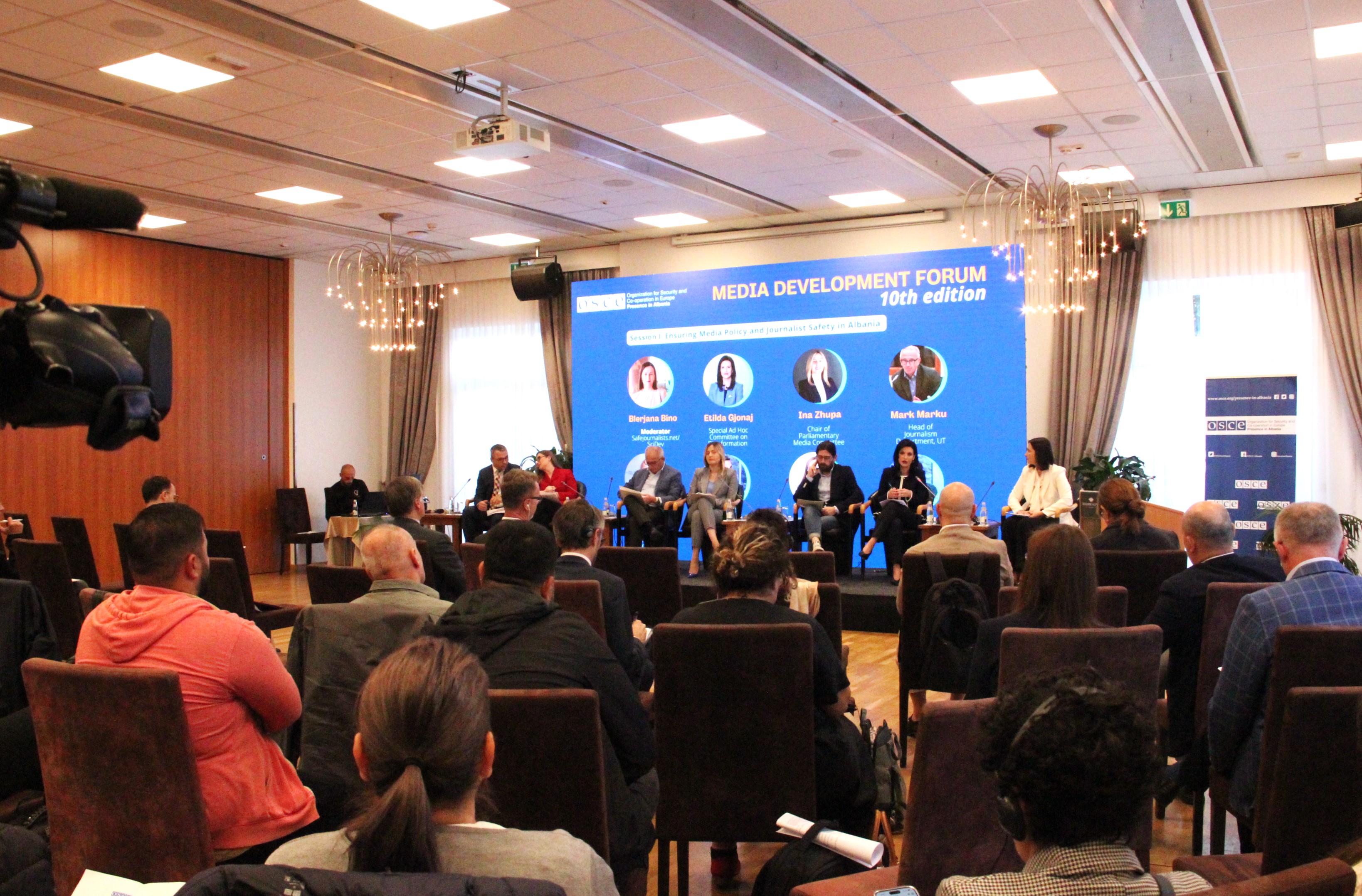 Representatives from media, public institutions, academics, and civil society gather at the OSCE Presence in Albania's 10th annual Media Development Forum, Tirana, 23 October 2024.