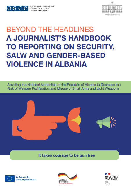 Cover of "Beyond the headlines: A journalist’s handbook to reporting on security, SALW and gender-based violence in Albania"
