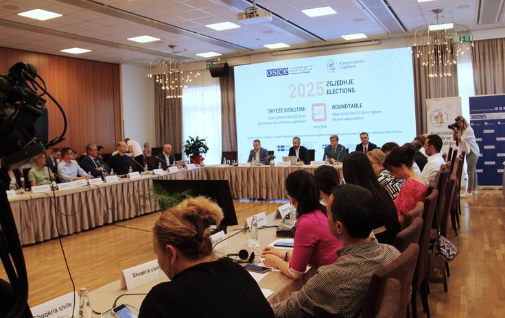 Tryeza e rrumbullakët “Zgjedhjet 2025: Çfarë duhet të bëjë KQZ-ja për të përmirësuar administrimin e zgjedhjeve”, organizuar nga Komisioni Qendror i Zgjedhjeve, me mbështetjen e Prezencës së OSBE-së në Shqipëri, Tiranë, 9 korrik 2024.