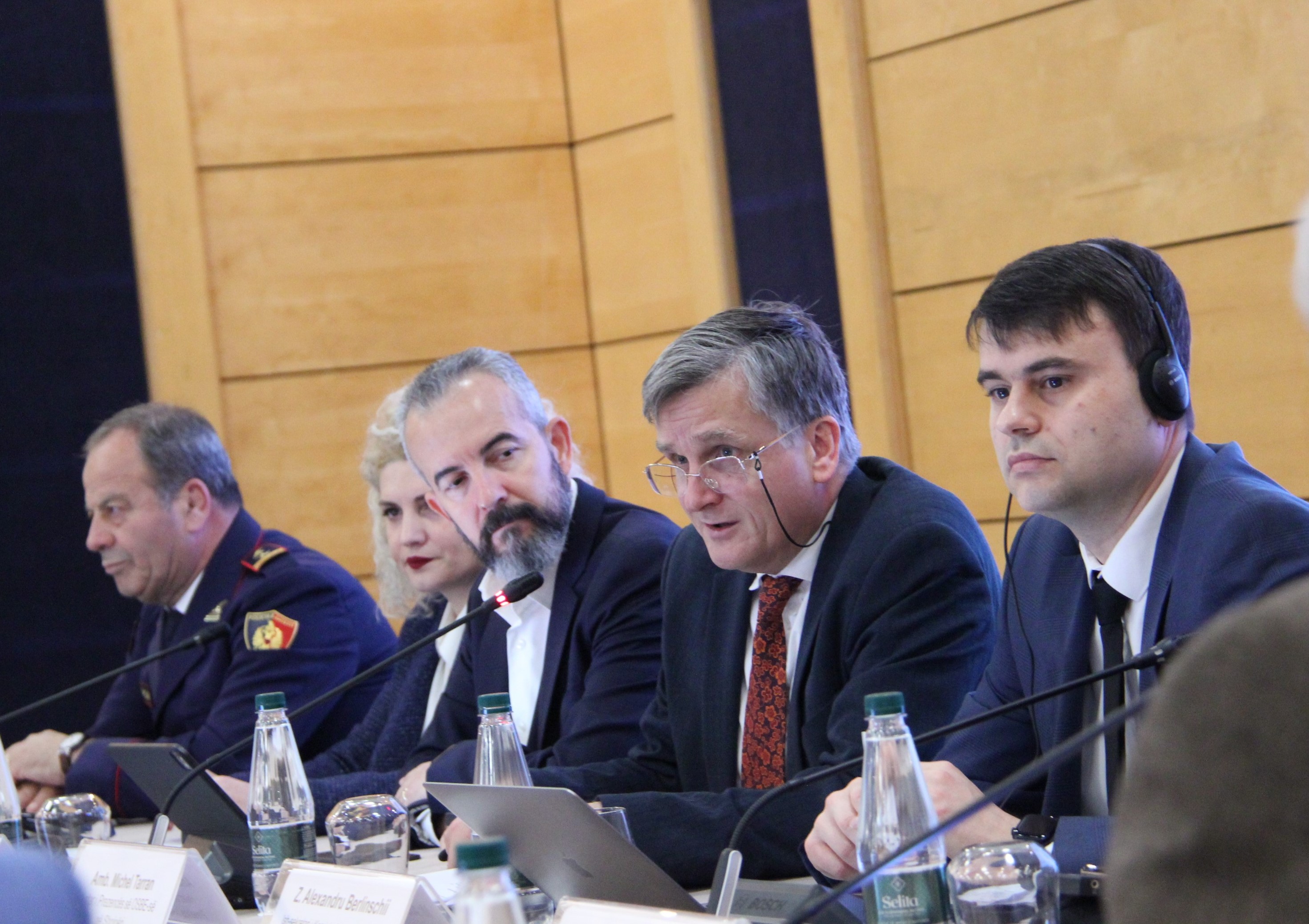 Head of OSCE Presence in Albania, Ambassador Michel Tarran, speaks at a conference on improving voting’s secrecy, preventing voters’ intimidation, organized by the Presence and the Central Election Commission, Tirana, 11 December 2024.