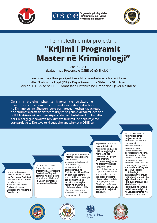 Faqja e parë e "Përmbledhje mbi projektin Krijimi i Programit Master në Kriminologji”