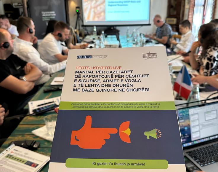 Prezenca e OSBE-së trajnon gazetarët për raportim të përgjegjshëm mbi armët e vogla, sigurinë dhe dhunën me bazë gjinore, Tiranë, 25 May 2025.