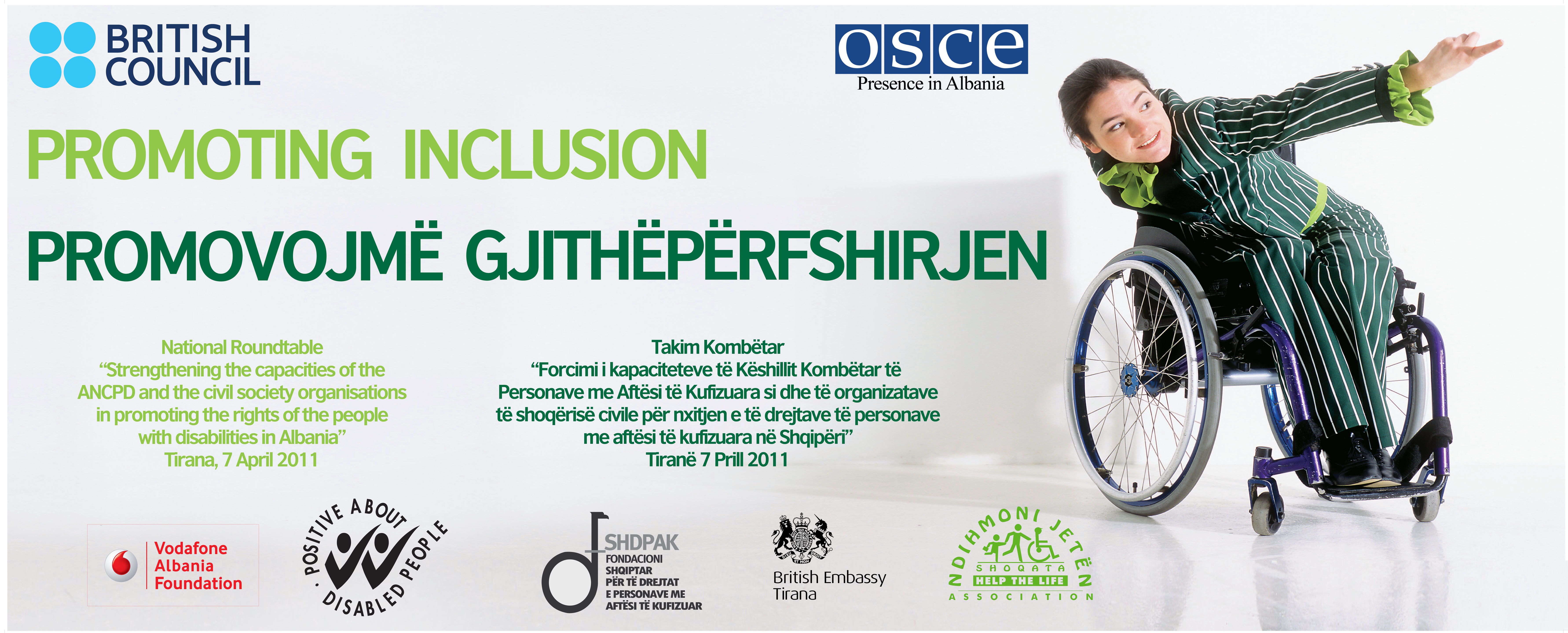 Banner of an event on improving the life quality of people with disabilities organized by the OSCE Presence in Albania and the British Council.